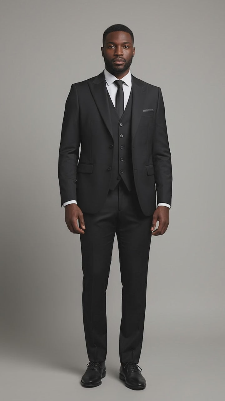 Black Tone on Tone 3-PC Slim Fit Suits For Men